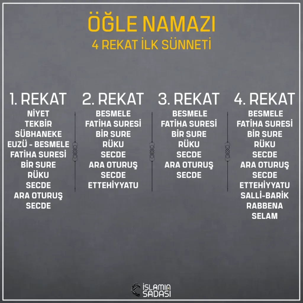 Öğle namazının ilk sünneti, dört rekat olarak kılınır. İşte adım adım kılınışı: